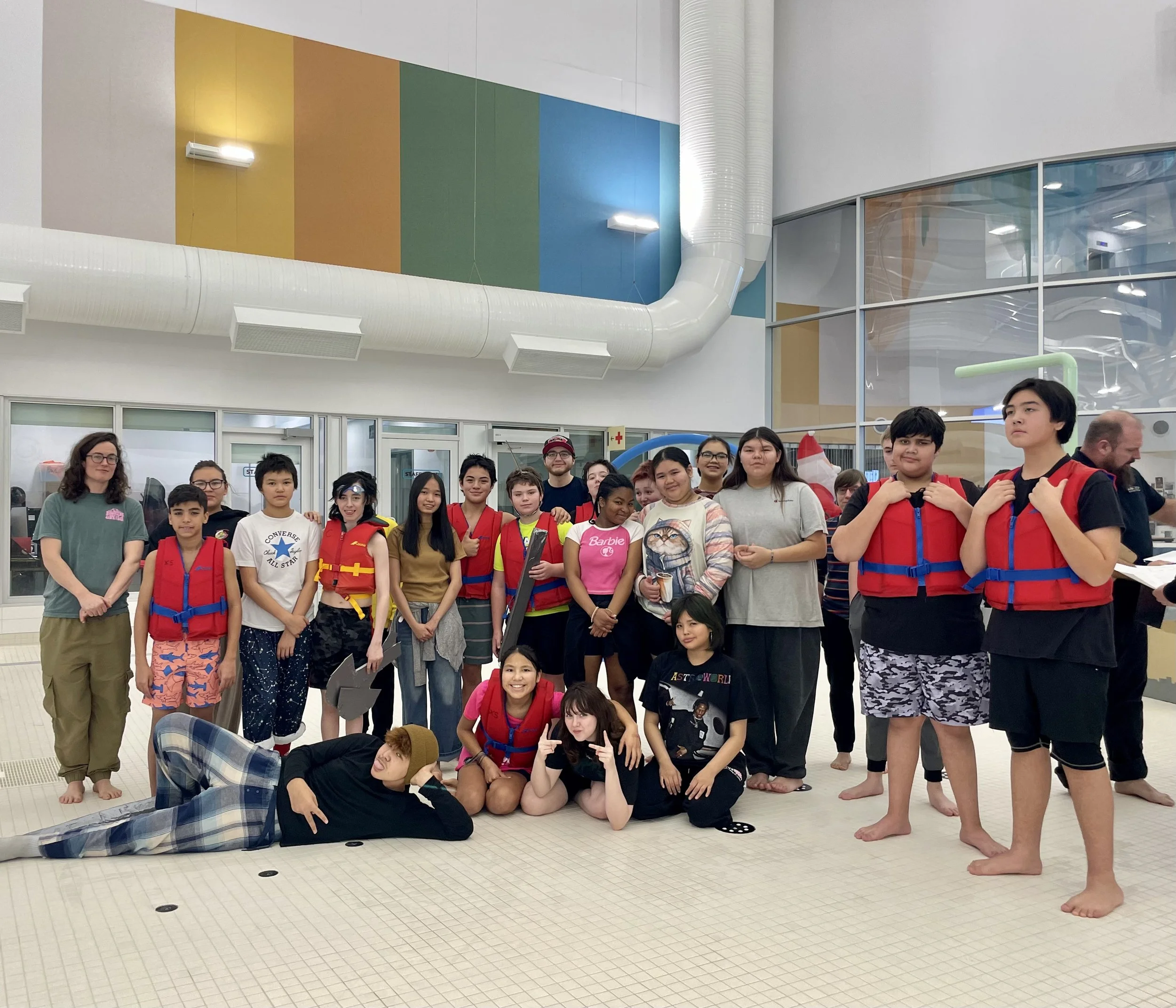On December 5th we took kids from Range Lake North School, and kids from Mildred Hall School to the pool for cardboard boat races. We owe a huge thank you to Matco Moving Solutions for providing us with the cardboard needed for this event. It truly wouldn’t have been possible without their support! A huge shout out goes to Northshore Waste Management for supporting our cleanup efforts with their donation of a bin to contain all those soggy boats! Another thank you goes to Tenaquip, for their generous donation of duct tape.