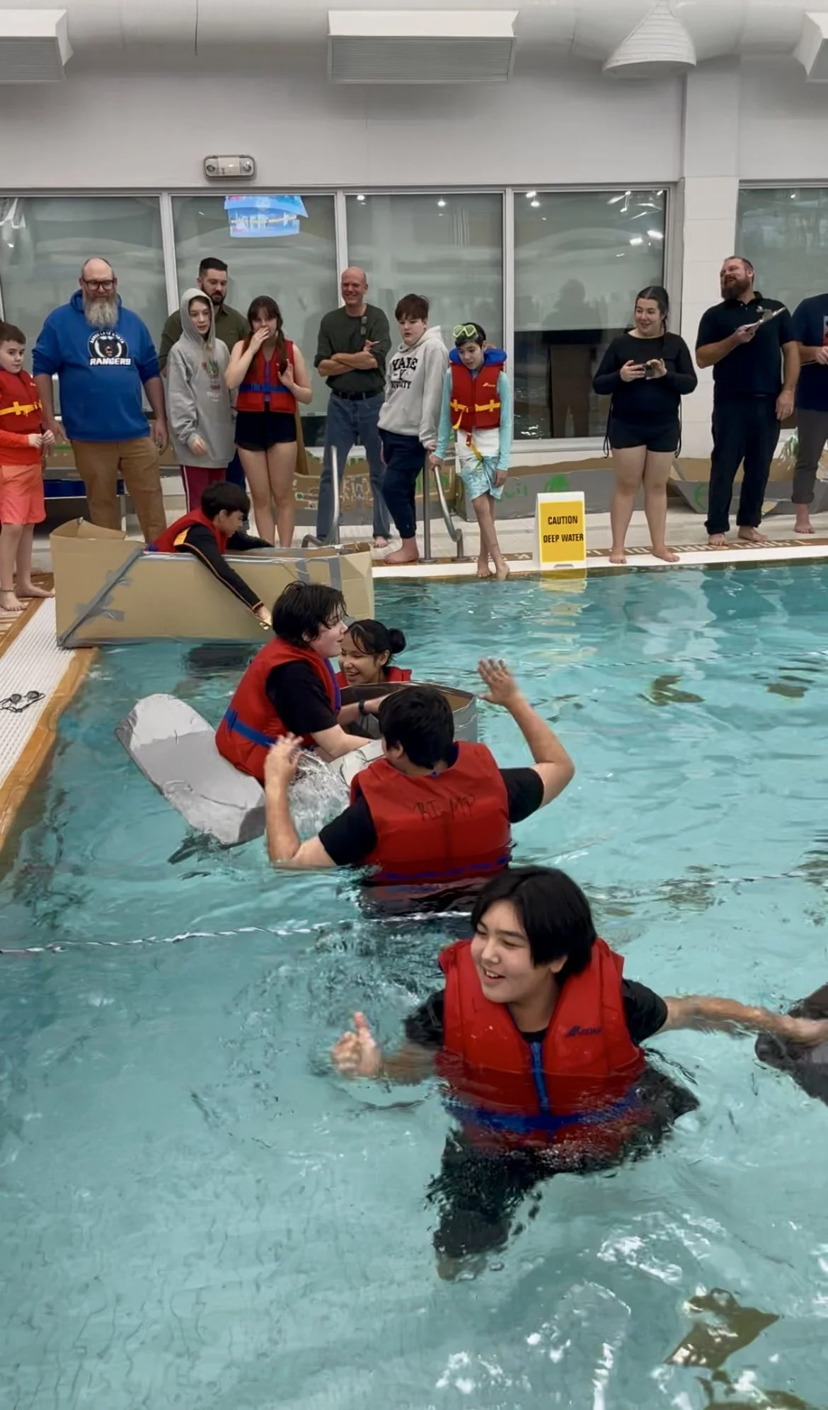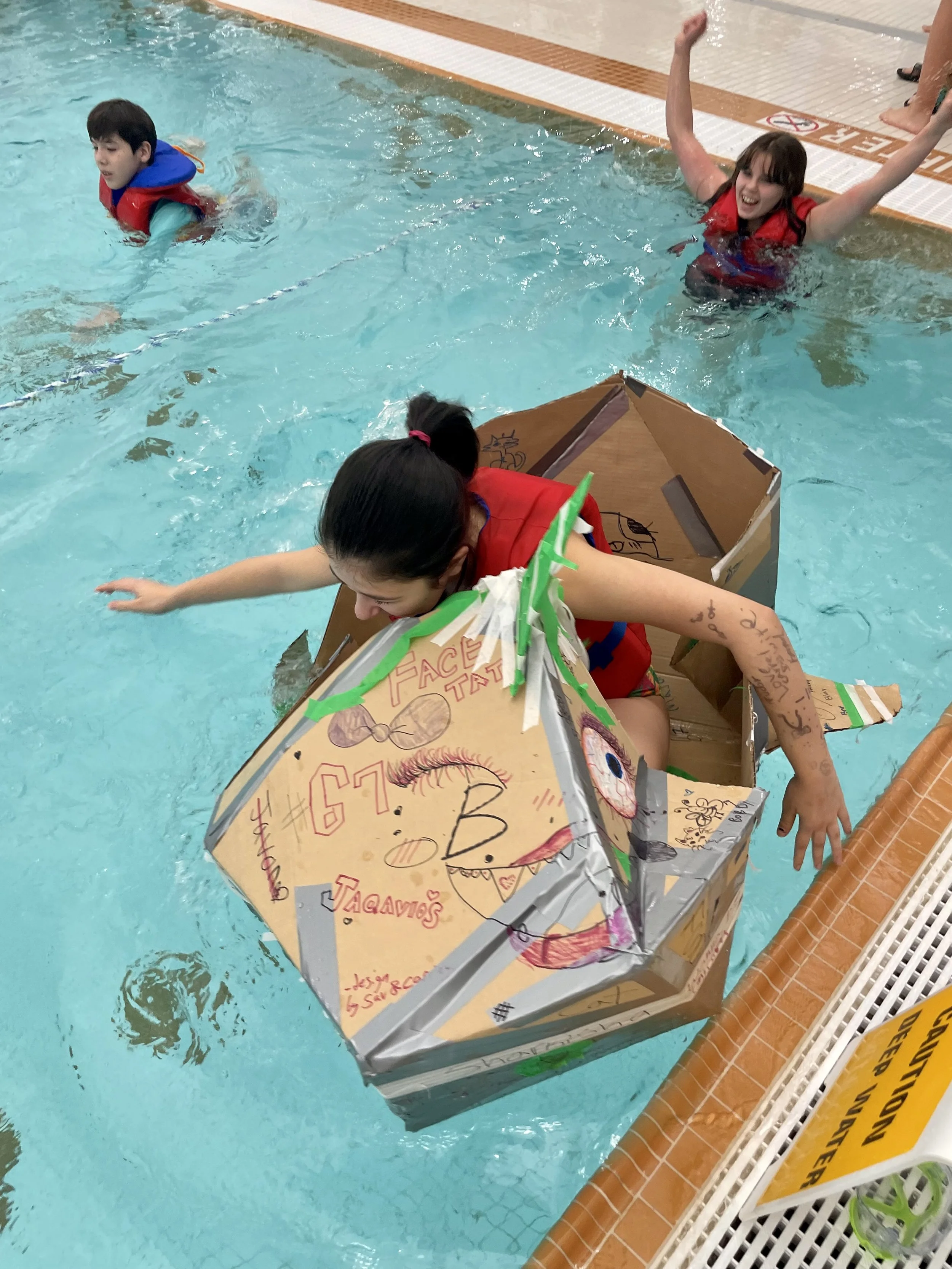Overall the event was a great success, the teams showcased their creativity and engineering skills. Some boats floated and some boats sank, and some even made it across the pool twice!